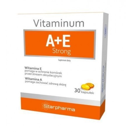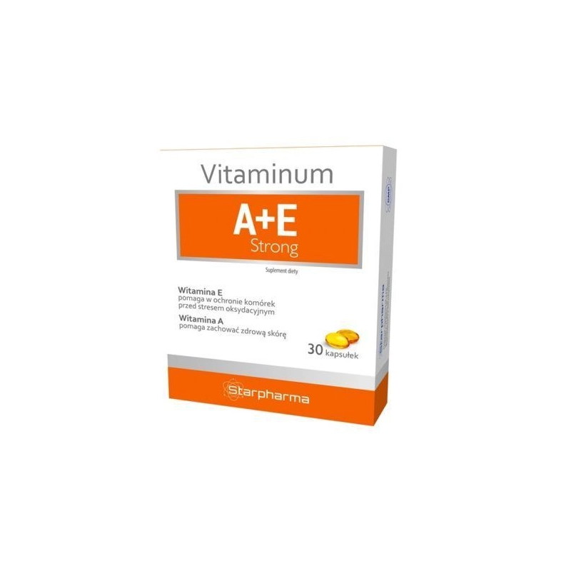 Suplement diety VITAMINUM A+E Strong zawiera witaminę A i witaminę E.