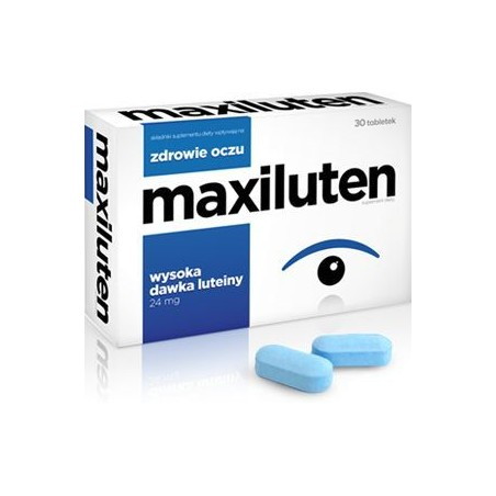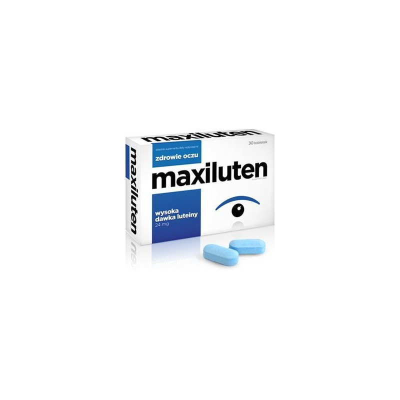 Suplement diety Maxiluten zawiera wysoką ilość luteiny w 1 tabletce. Dodatkowo stanowi źródło witaminy C i cynku oraz witaminy A pochodzącej z beta-karotenu. Cynk, witamina A oraz ekstrakt z płatków róży stulistnej pomagają w utrzymaniu prawidłowego widzenia. Jednocześnie wraz z witaminą C wspomaga prawidłowe działanie układu odpornościowego oraz pomaga w ochronie komórek przed stresem oksydacyjnym.