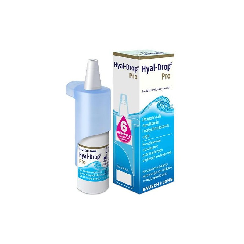 Hyal-Drop Pro, krople do oczu, 10 ml – nawilżające krople do oczu bez konserwantów. Przynoszą długotrwałe nawilżenie i natychmiastową ulgę osobom z nasilonymi objawami suchego oka (takich jak zmęczenie, podrażnienie, uczucie „piasku pod powiekami”, pieczenie lub łzawienie).