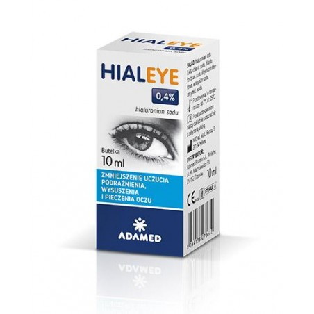 Hialeye 0,4% to sterylny roztwór do oczu o stężeniu 0,4% zawiera hialuronian sodu o dużej masie cząsteczkowej, uzyskiwany metodą syntezy biotechnologicznej. Hialuronian sodu ma właściwości mukomimetyczne, mukoadhezyjne i wiskoelastyczne, dzięki czemu poprawia stabilność filmu łzowego i utrzymuje komfort powierzchniowych struktur gałki ocznej poprzez nawilżenie, nawodnienie i ochronę.