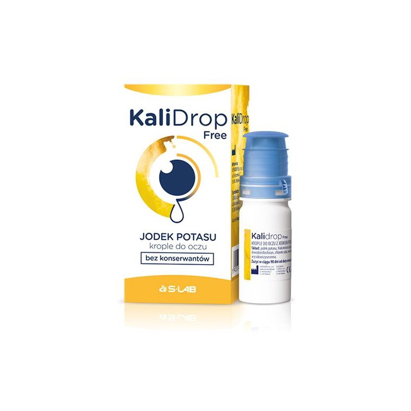 KaliDrop Free, krople do oczu z jodkiem potasu, 10 ml – sterylne krople do oczu bez środka konserwującego, zawierające w składzie jodek potasu oraz hialuronian sodu. Do stosowania w celu nawilżania powierzchni oka oraz w profilaktyce zmętnień soczewki i ciała szklistego oka.