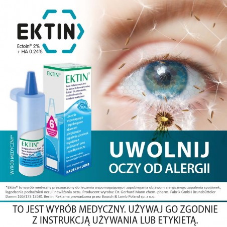 • Krople bez konserwantów Ektin chronią oko przed szkodliwym wpływem alergenów.