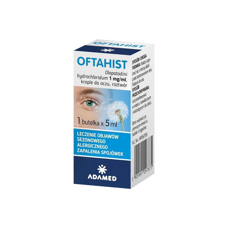 Krople do oczu Oftahist to lek o działaniu przeciwalergicznym i przeciwhistaminowym. Krople stosuje się w rozpoznanym sezonowym alergicznym zapaleniu spojówek u osób dorosłych. Oftahist zmniejsza oczne objawy reakcji uczuleniowej, jak świąd, łzawienie czy obrzęk spojówek oraz powiek.