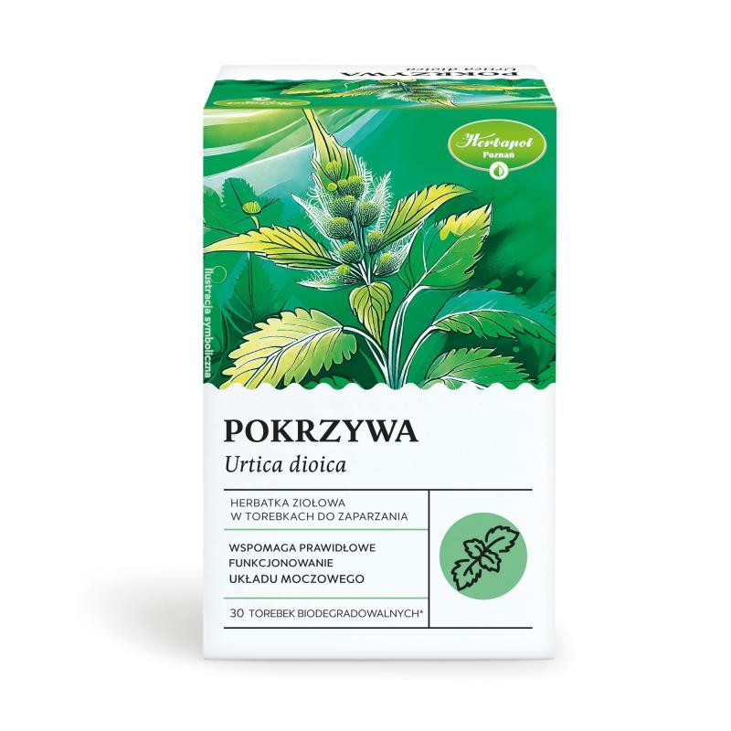 Herbapol Poznań, Pokrzywa, herbatka ziołowa to suszone i rozdrobnione ziele pokrzywy w torebkach, przeznaczone do przygotowania naparu. Pokrzywa znana jest ze swoich właściwości moczopędnych, oczyszczających organizm oraz wspierających układ trawienny.