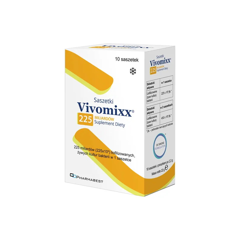 Vivomixx Saszetki 225 - suplement diety przeznaczony dla dzieci powyżej 3. roku życia i dorosłych.