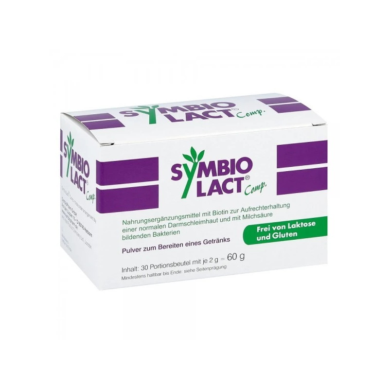 SymbioLact® Comp. jest preparatem probiotycznym w postaci proszku do rozpuszczenia w płynie. Zawiera liofilizowane żywe kultury bakterii (probiotyki).