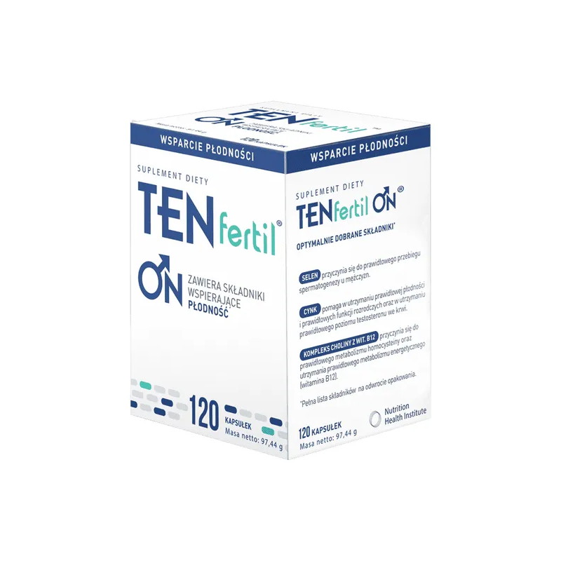 TENfertil ON - to suplement diety wspomagający płodność u mężczyzn. Produkt przeznaczony dla mężczyzn powyżej 18. roku życia.