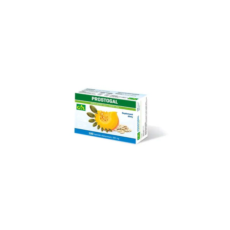 Prostogal - suplement diety, zawierający zimnotłoczony olej z pestek dyni. Produkt przeznaczony dla osób dorosłych.