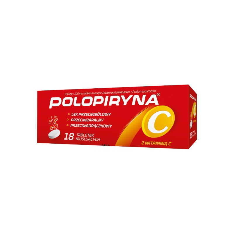 Polopiryna C jest lekiem złożonym z kwasu acetylosalicylowego i witaminy C. Działa przeciwbólowo, przeciwgorączkowo i przeciwzapalnie. Tabletka rozpuszczalna zapewnia szybkie i całkowite wchłanianie składników leku.