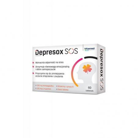 Depresox SOS - to suplement diety w postaci tabletek, który zawiera witaminy z grupy B oraz ekstrakt z Ashwagandhy. Produkt przeznaczony dla osób dorosłych.