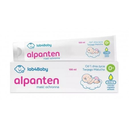 Maść ochronna dla dzieci zawierająca pantenol, który chroni skórę dziecka przed wystąpieniem odparzeń pieluszkowych. Dodatkowo produkt został wzbogacony w olej z migdałów, awokado oraz rokitnika, lanolinę, alantoinę oraz witaminy A+E, które wspomagają regenerację delikatnej skóry dziecka. Ekstrakt z rumianku działa przeciwzapalnie. Lab4baby alpanten może być stosowany również do pielęgnacji brodawek sutkowych u matek karmiących piersią.