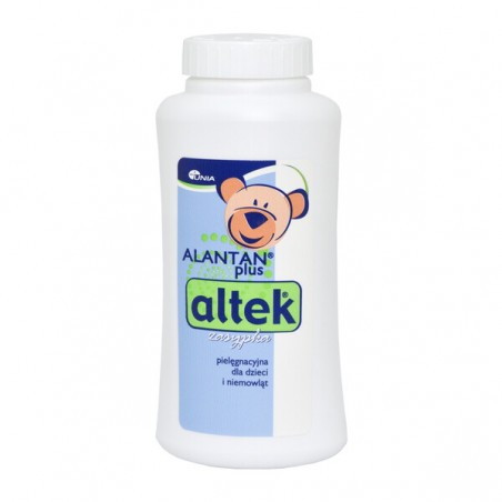 Zasypkę, Alantan Plus Altek należy stosować po każdej kąpieli i dokładnym wysuszeniu skóry oraz po zmianie pieluchy ( po umyciu i wysuszeniu skóry).