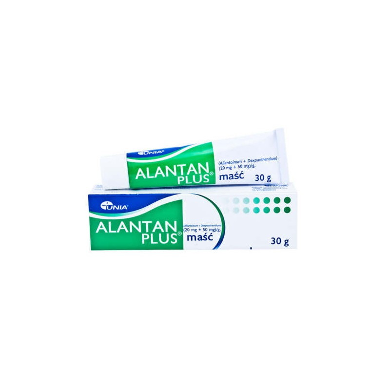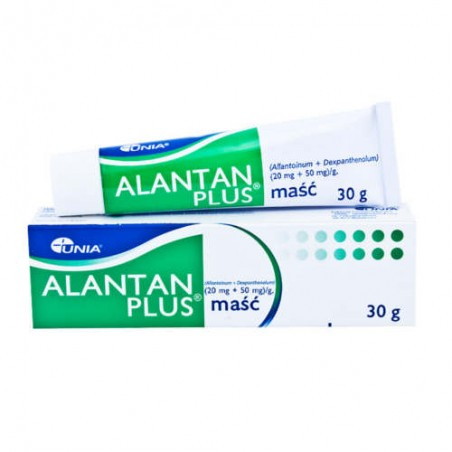 Lek Alantan Plus ma postać maści do stosowania miejscowego na skórę.