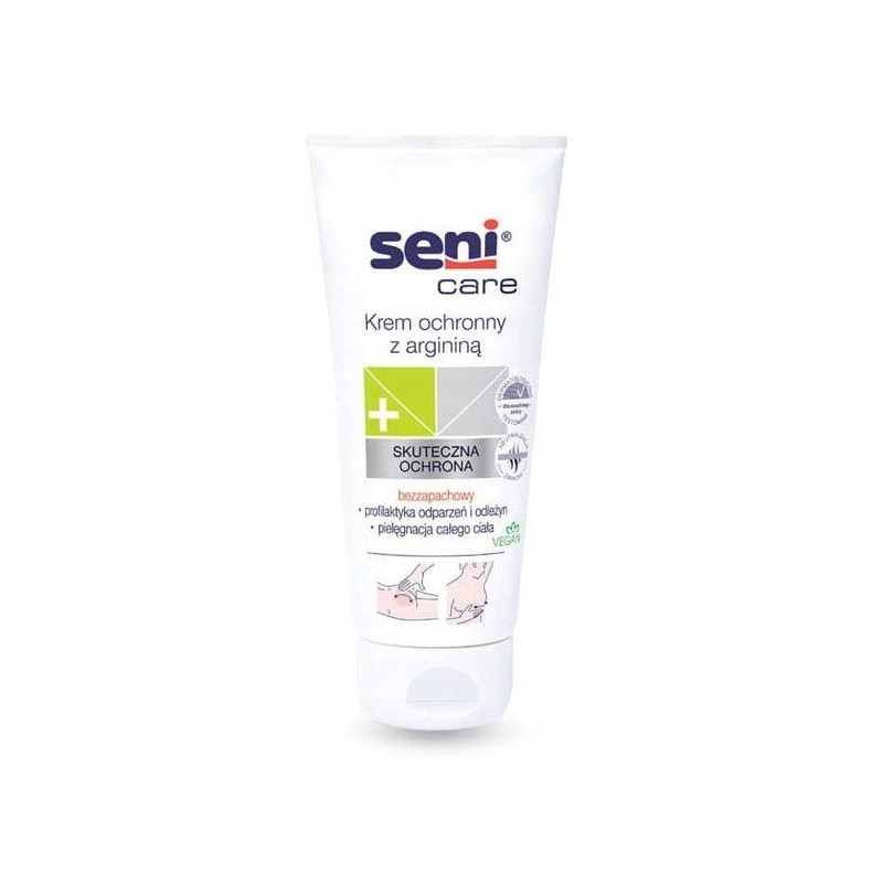 Seni Care Krem ochronny z argininą głęboko nawilża i przyspiesza regenerację naskórka. Zawiera Sinodor® – naturalną substancję pochłaniającą zapach moczu.