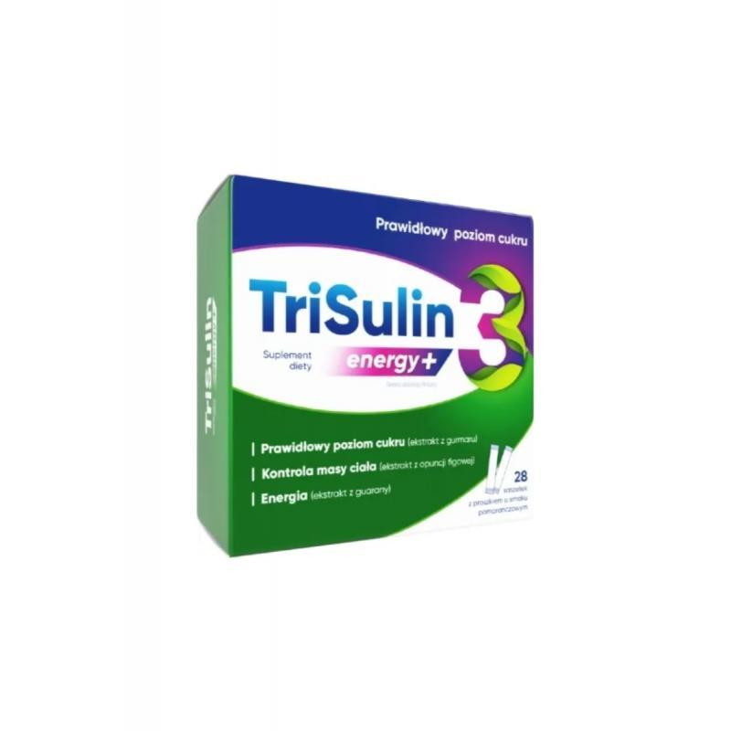 Saszetki Trisulin Energy+ to produkt skierowany do osób chcących utrzymać prawidłowy poziom cukru we krwi, prawidłową masę ciała oraz codzienną energię.