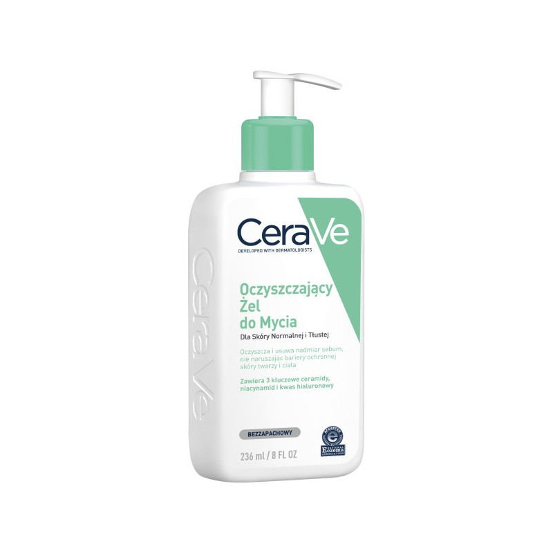 CERAVE to kompozycja trzech ceramidów o budowie identycznej z ceramidami zawartymi w skórze: ceramid 1, ceramid 3, ceramid 6-II, a takze cholesterolu, kwasów tłuszczowych i fitosfingozyny. Składniki te wykazują działanie synergiczne w odbudowie bariery ochronnej skóry. Technologia (MVE) (Multivesicular Emulsion Technology) umożliwia stabilne w czasie uwalnianie składników aktywnych, w tym niezbędnych ceramidów, aby pomóc w odbudowaniu bariery ochronnej skóry, dzięki czemu pozostaje ona nawilżona na dłużej. - OCZYSZCZA I USUWA NADMIAR SEBUM - ZAWIERA 3 KLUCZOWE CERAMIDY, NIACYNAMID I KWAS HIALURONOWY - BEZZAPACHOWE - HYPOALERGICZNE - NIEKOMADOGENNE Opakowanie produktu zawiera opisy w języku polskim.