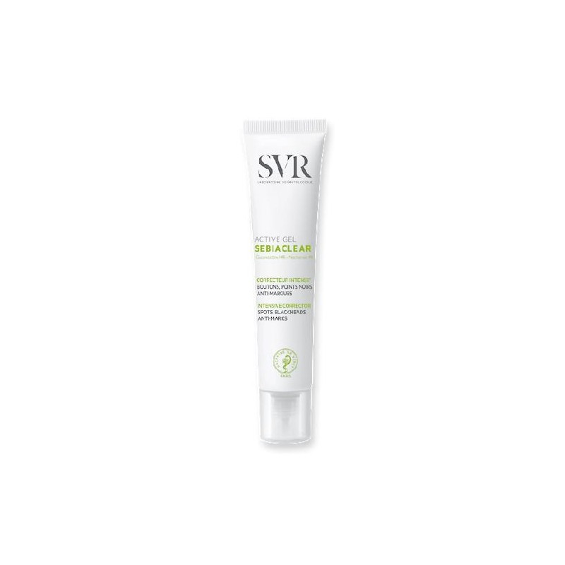 SVR Sebiaclear Active Żel intensywnie korygujący ogranicza ilość niedoskonałości, działa przeciwzapalnie i rozjaśnia przebarwienia oraz wspiera barierę naskórkową. Preparat przeznaczony jest do pielęgnacji skóry wrażliwej, trądzikowej, także jako uzupełnienie leczenia w przypadku ciężkiego trądziku.