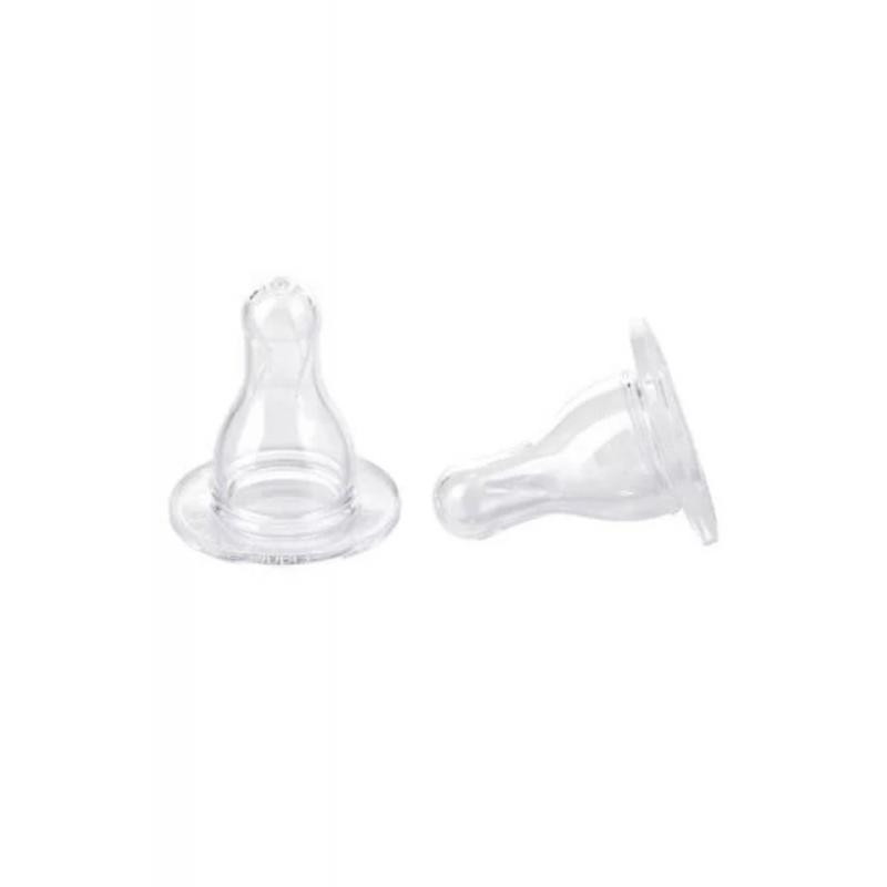 Silikonowy okrągły smoczek o przepływie średnim pasuje do butelek wąskich. Doskonale odpowietrza się i nie zlepia podczas karmienia. Wykonany został z wysokiej jakości silikonu. Nie ma smaku ani zapachu. Przystosowany jest do wielokrotnej dezynfekcji. Przeznaczony dla dzieci w wieku 6-12 miesięcy. W opakowaniu 2 sztuki.