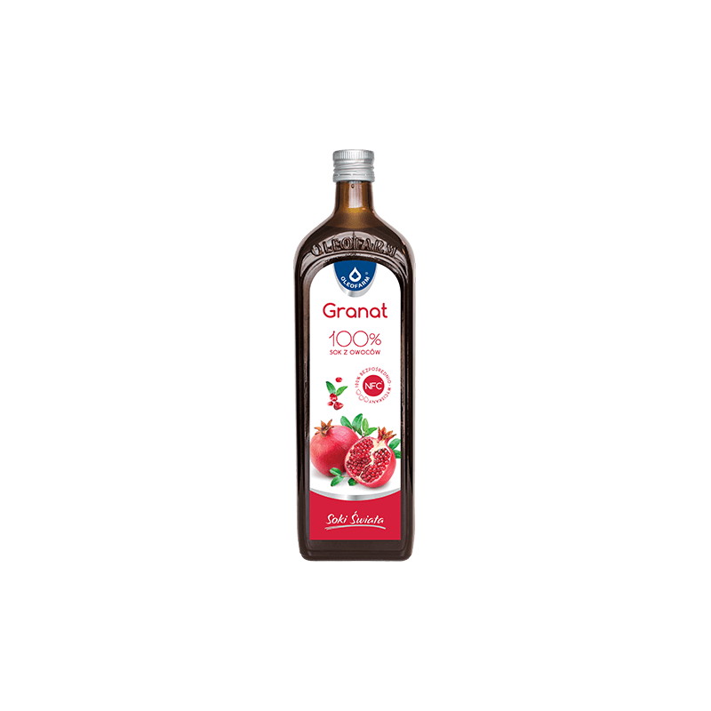 Granatowiec właściwy (Punica granatum L.), nazywany zwyczajowo granatem, jest jedną z najstarszych roślin uprawianych w południowo-zachodniej Azji. Bezpośrednio wyciskany z owoców granatu sok stanowi doskonałe uzupełnienie codziennej zbilansowanej diety. Charakteryzuje się naturalnie kwaśnym, lekko cierpkim smakiem oraz zawartością polifenoli (550mg w 100ml). Sok idealnie nadaje się do przyrządzania orzeźwiających napojów owocowych.