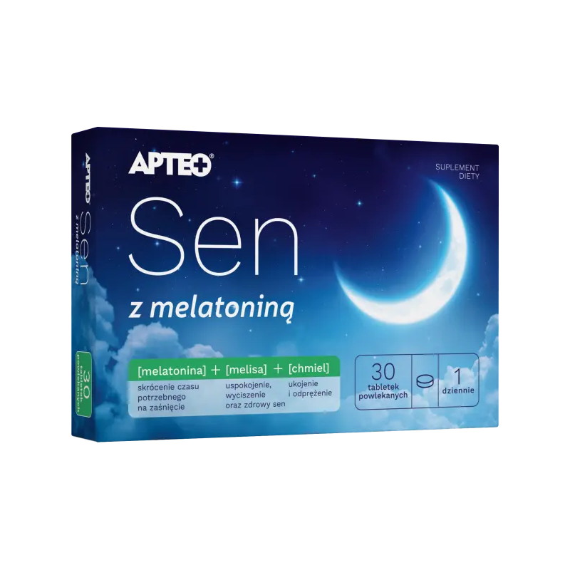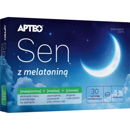 Preparat zawiera składniki sprzyjające uspokojeniu oraz poprawiające komfort snu.Melatonina pomaga w skróceniu czasu potrzebnego na zaśnięcie.Melisa uspokaja ,pomaga się wyciszyć i odpocząć oraz zapewnia zdrowy sen.Chmiel przyczynia sie do ukojenia i odprężenia.