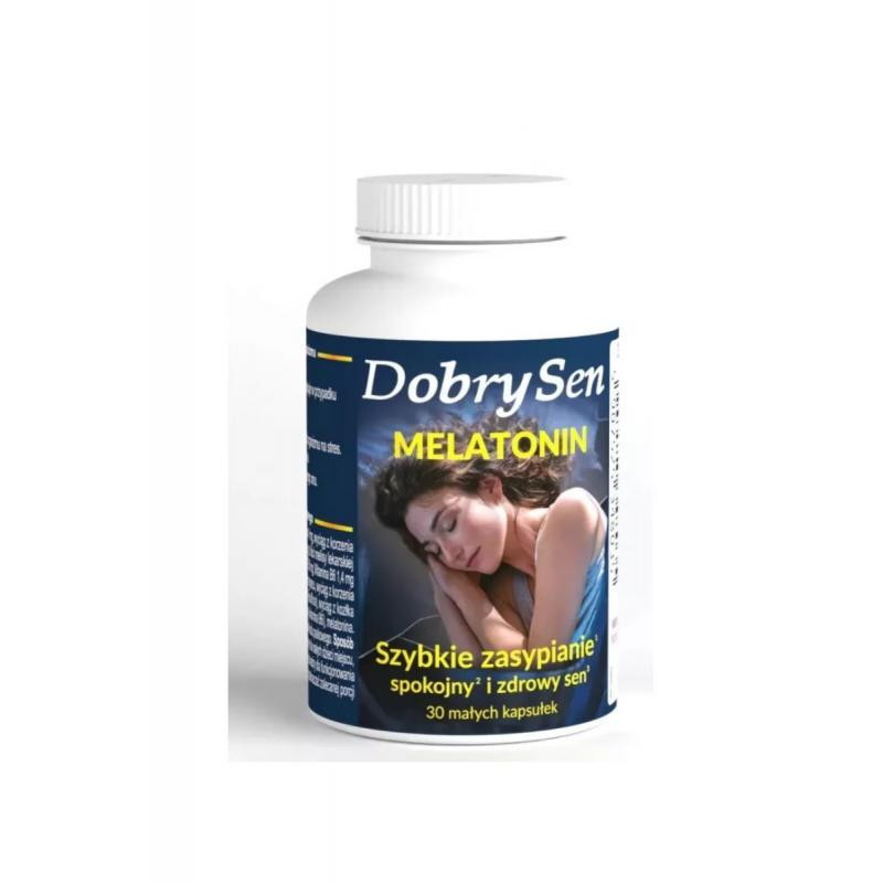 Dobry Sen MELATORIN to suplement diety w kapsułkach, stworzony dla osób dorosłych, które mają problemy ze snem. Zawiera melatoninę, która skraca czas zasypiania, oraz ekstrakty z melisy, passiflory, chmielu i waleriany, które ułatwiają zasypianie i poprawiają jakość snu.