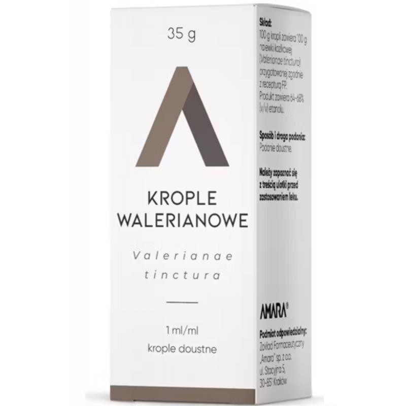 Krople walerianowe to lek, który zawiera nalewkę z korzeni kozłka lekarskiego przygotowaną zgodnie z recepturą zamieszczoną w Farmakopei Polskiej. Krople walerianowe stosuje się w celu łagodzenia objawów wywołanych stanami napięcia nerwowego jak również jako środek ułatwiający zasypianie. Produkt przeznaczony dla dorosłych i młodzieży od 12 lat.