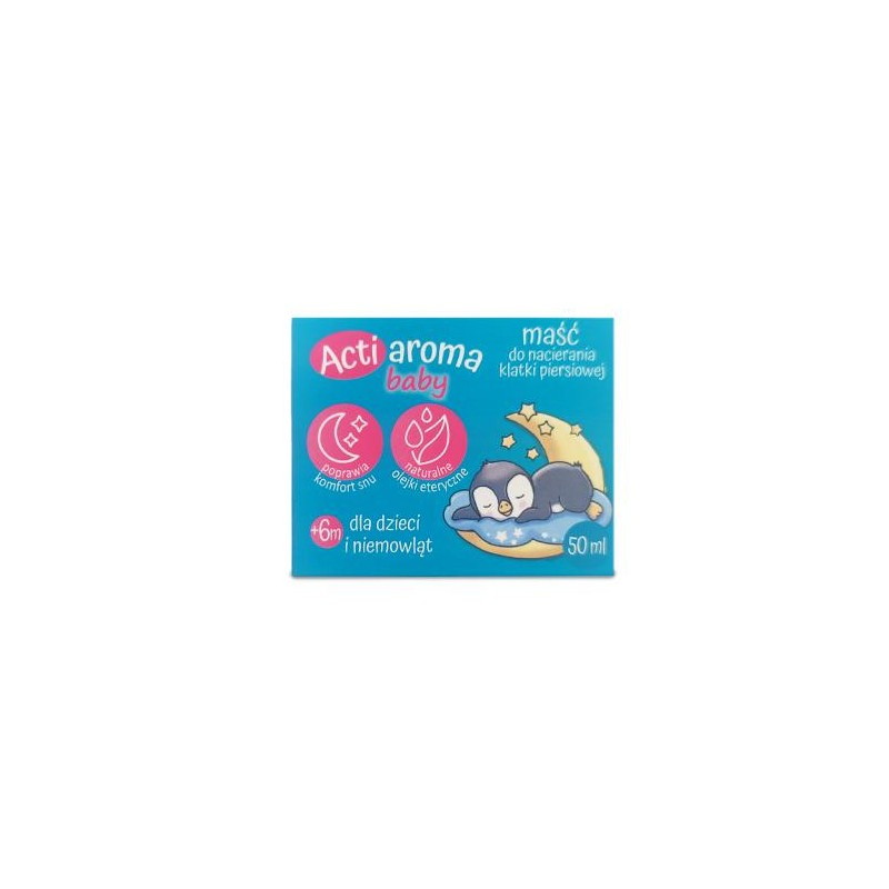 Actiaroma Baby Maść do nacierania klatki piersiowej to produkt kosmetyczny zawierajacy w swoim składzie olejki eteryczne, poprawiający komfort snu. Produkt przeznaczony dla dzieci i niemowląt od 6 miesiąca życia.