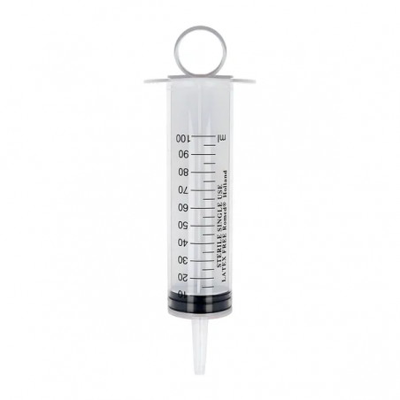 Strzykawka, 100ml, 3-częściowa bez igły z końcówką do cewnika.