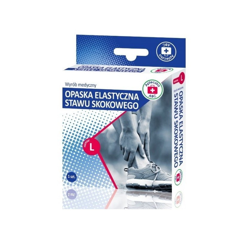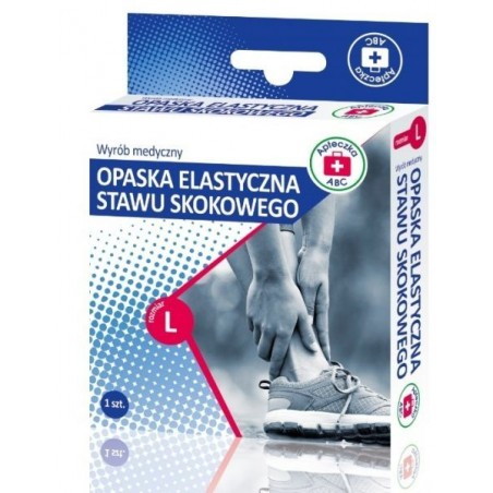 Opaska elastyczna stawu skokowego Apteczka ABC przeznaczona jest zarówno do celów rehabilitacyjnych, jak i sportowo-profilaktycznych. Opaskę należy używać zgodnie z zaleceniami lekarza lub rehabilitanta. Wyrób wielokrotnego użytku.