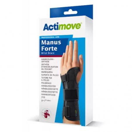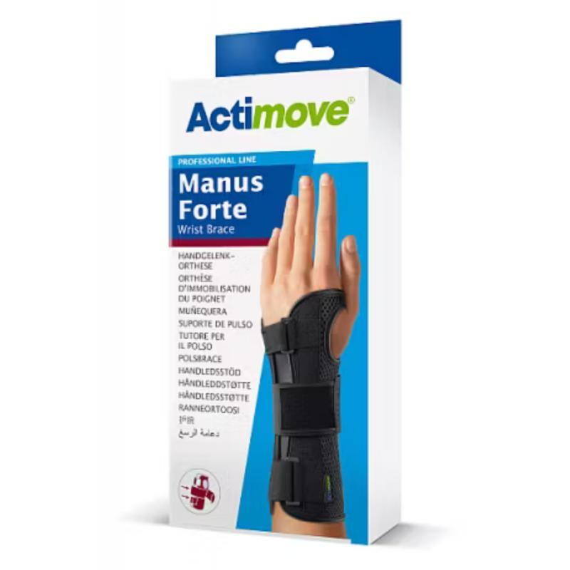 Actimove PL Manus Forte Wrist Brace orteza lewego nadgarstka – wyrób medyczny wielokrotnego użytku, przeznaczony do stosowania w celu łagodzenia bólu dla osób cierpiących z powodu skręceń, urazów tkanek miękkich, stanów zapalnych czy choroby zwyrodnieniowej stawów. Orteza należy do wyrobów z linii Professional Line, których stosowanie wspomaga uśmierzanie bólu i wspiera proces powrotu do pełnej sprawności. Wszystkie wyroby linii PL zapewniają wsparcie, stabilność lub (w zależności od potrzeby) unieruchomienie stawu. Zapewniają duży komfort noszenia.