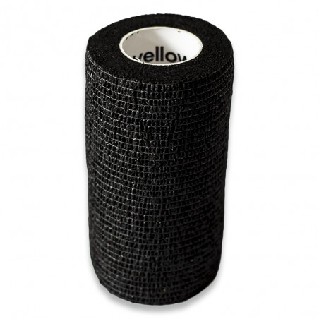 Bandaż kohezyjny w kolorze czarnym i rozmiarze 10 cm x 4,5 m, zapewnia doskonałą jakość i wszechstronne zastosowanie.