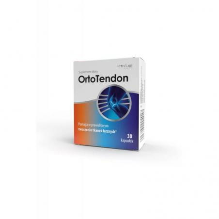 OrtoTendon to suplement diety zawierający siarczan chondroityny, kolagen hydrolizowany, kwas hialuronowy, mangan i witaminę C. Jest zalecany w celu wsparcia odbudowy tkanek łącznych, wzmocnienia chrząstki i kości, poprawy produkcji kolagenu oraz przyspieszenia regeneracji ścięgien po rekonstrukcji, operacjach, urazach i naciągnięciach.