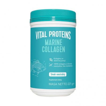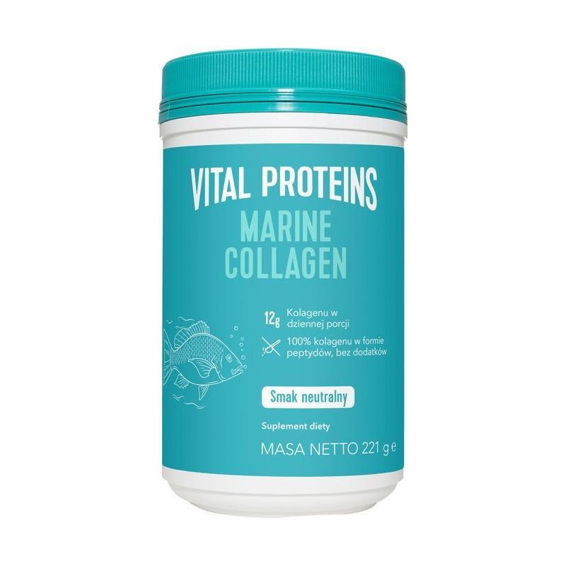 Vital Proteins Marine Collagen to suplement diety o neutralnym smaku, przeznaczony dla dorosłych, zawierający peptydy kolagenowe pochodzenia rybiego. Produkt wspiera zdrowie skóry, mięśni, więzadeł, ścięgien i kości. Wystarczy dodać 1-2 miarki (12 g) do 250 ml płynu i dokładnie wymieszać, by cieszyć się korzyściami płynącymi z codziennej suplementacji.