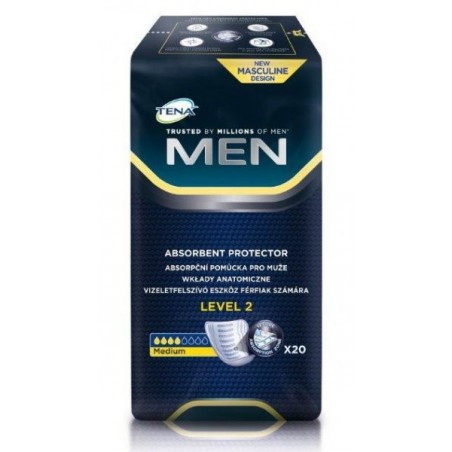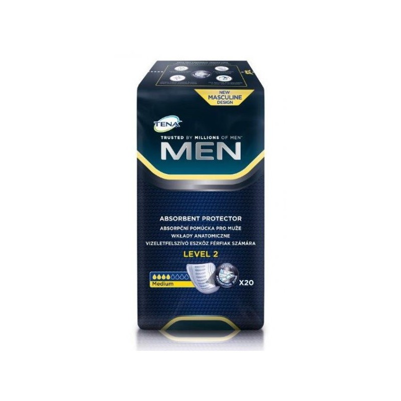 Wyrób medyczny TENA Men Medium to cienkie wkłady anatomiczne dla mężczyzn w każdym wieku, z problemem lekkiego, bądź średniego nietrzymania moczu.