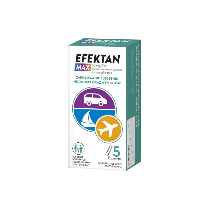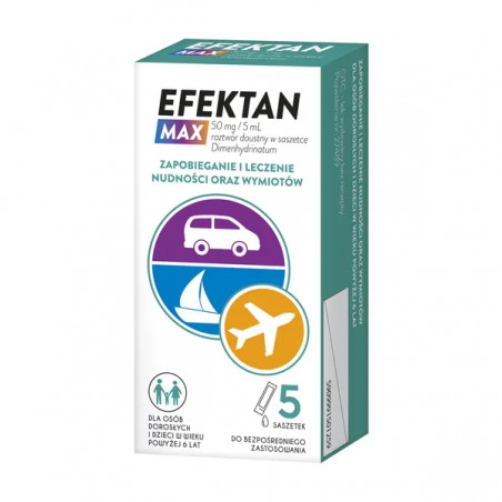 Efektan Max to lek, który stosuje się głównie w zapobieganiu choroby lokomocyjnej oraz leczeniu nudności innego pochodzenia. Efektan Max ma postać roztwory doustnego w saszetce. Przezroczysty płyn o smaku i zapachu czarnej porzeczki
