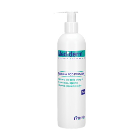 Wyrób Mediderm Shower to emulsja pod prysznic wskazana dla osób chorych na łuszczycę, egzemę i atopowe zapalenie skóry.