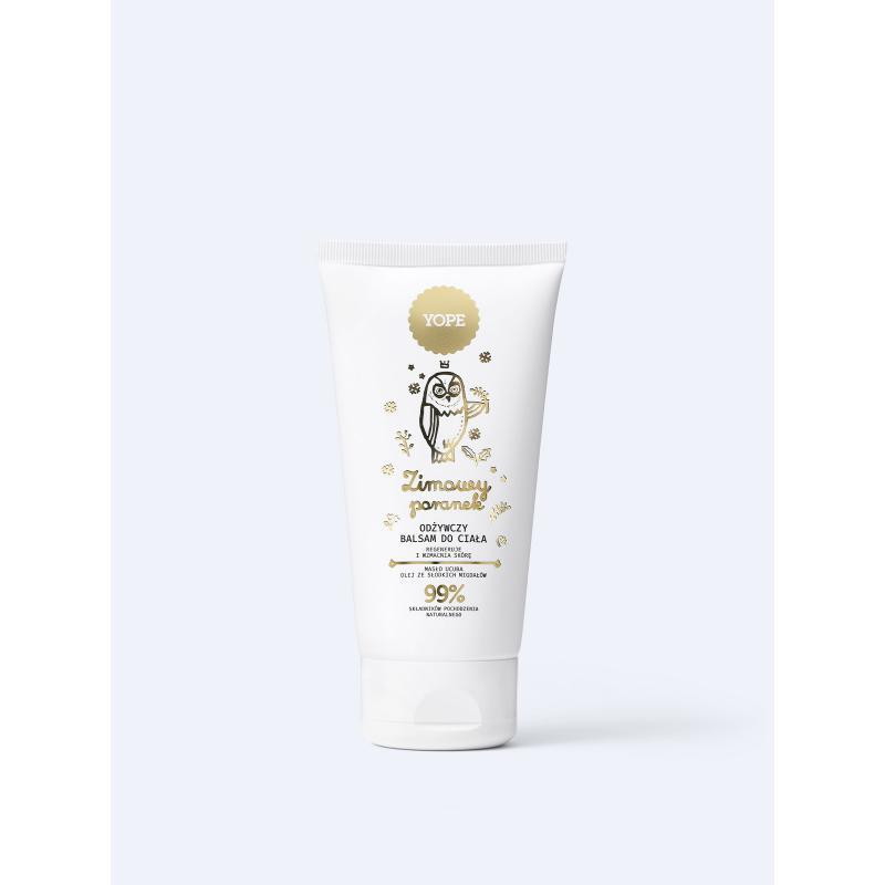 Naturalny balsam do ciała Yope Zimowy Poranek intensywnie nawilża i regeneruje skórę, chroniąc ją przed przesuszeniem i zimowym chłodem. Zmysłowy zapach wanilii i drzewa sandałowego otula ciało, tworząc przyjemny rytuał pielęgnacyjny na każdy dzień.