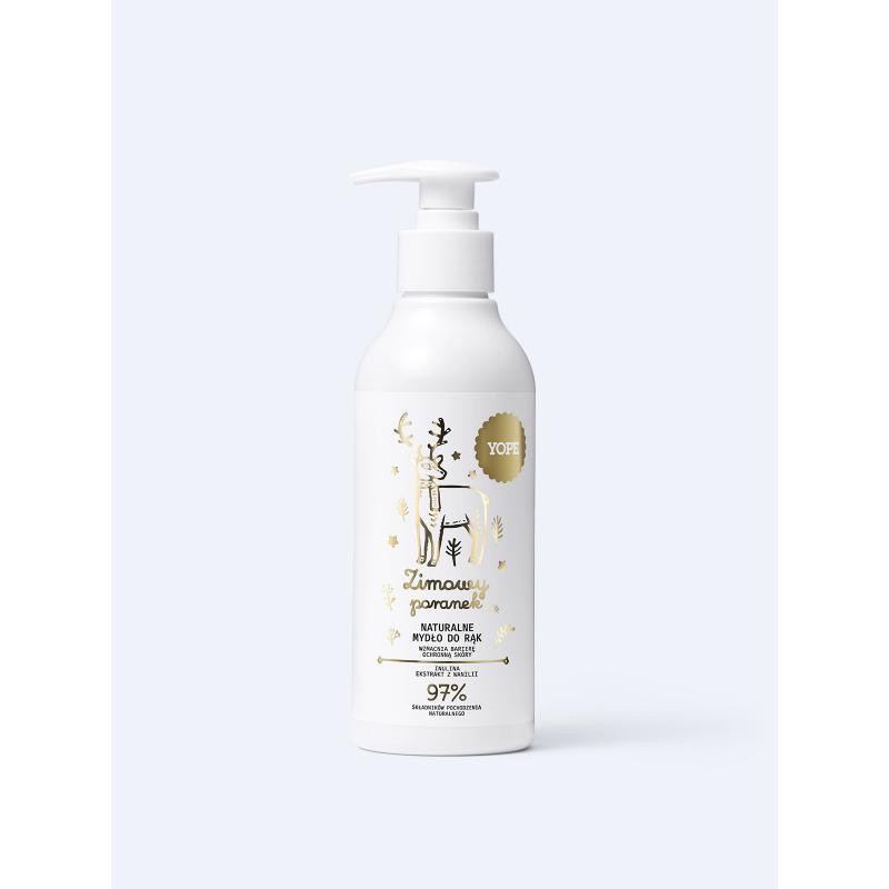 Naturalne mydło do rąk Yope Zimowy Poranek to limitowana edycja, która zamienia codzienną pielęgnację dłoni w wyjątkowy zimowy rytuał. Delikatne składniki myjące skutecznie oczyszczają, nie naruszając bariery ochronnej skóry, a inulina dodatkowo ją wzmacnia. Dzięki alantoinie mydło koi i łagodzi podrażnienia, zapewniając miękką i zadbaną skórę dłoni. Zmysłowy zapach mrożonej wanilii, fiołków i słodkiego karmelu z nutą kardamonu otula dłonie ciepłym, przytulnym aromatem, który długo się utrzymuje, przywołując atmosferę zimowego poranka.