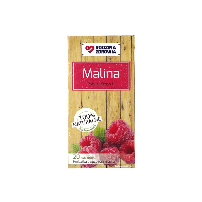 owoc maliny (Rubus ideaus L.) 50%, kwiat hibiskusa (Hibiscus sabdariffa L.), ziele mięty (Mentha piperita L.), owoc aronii (Aronia melanocarpa ), owoc jabłka (Malus domestica ), aromat naturalny malinowy.