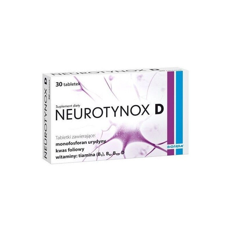 Neurotynox to suplement diety przeznaczony do uzupełnienia diety w składniki odżywcze takie jak monofosforan urydyny, kwas foliowy, witamina B1, B6, B12 i D. Kompleks witamin zawarty w produkcie, tiamina, witamina B6 i witamina B12, odgrywa rolę w funkcjonowaniu tkanki nerwowej, usprawniając jej działanie. Ponadto kwas foliowy, witamina B12, witamina D biorą udział w procesie podziału komórek, a witamina B12, witamina B6 i kwas foliowy oraz przyczyniają się do zmniejszenia uczucia zmęczenia i znużenia.