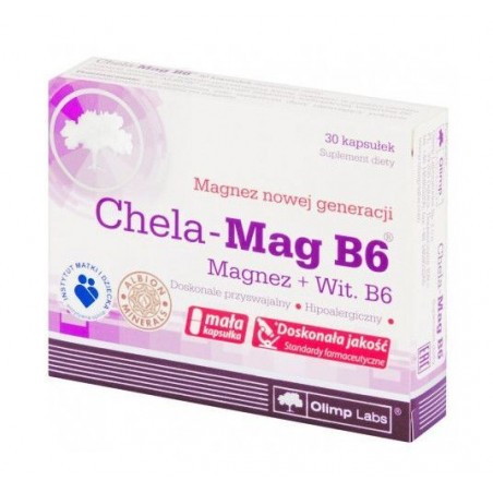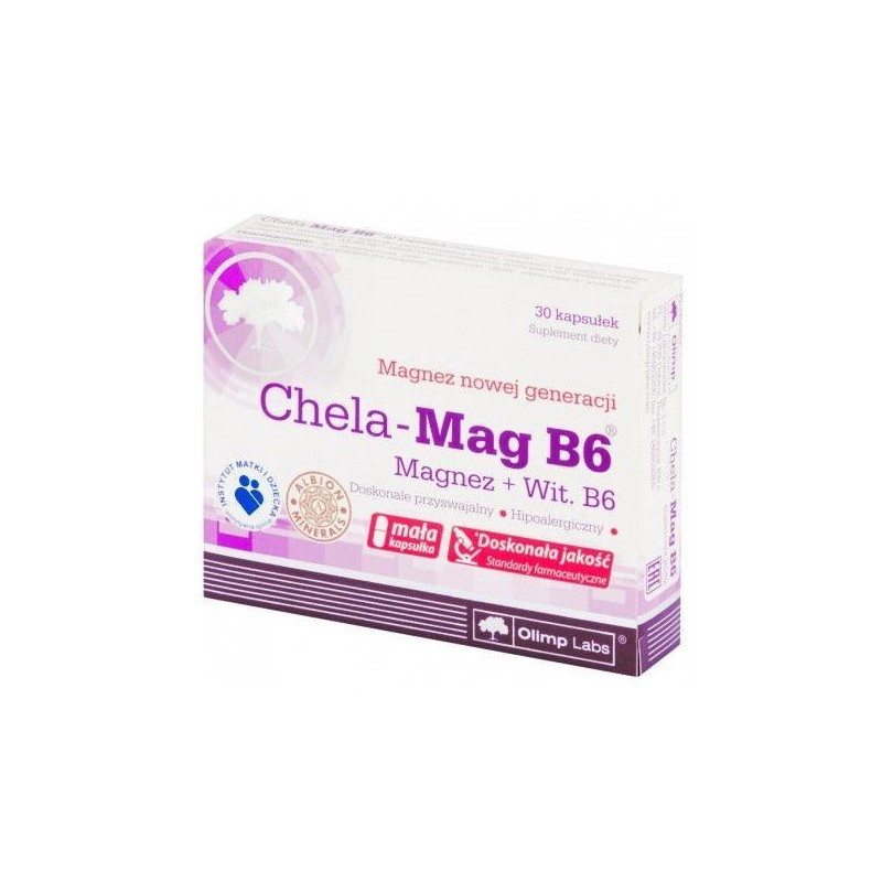 Chela-Mag B6 to preparat zawierający wysoko przyswajalną formę magnezu w postaci chelatu aminokwasowego Albion (diglicynian magnezu), wzbogacony witaminą B6.