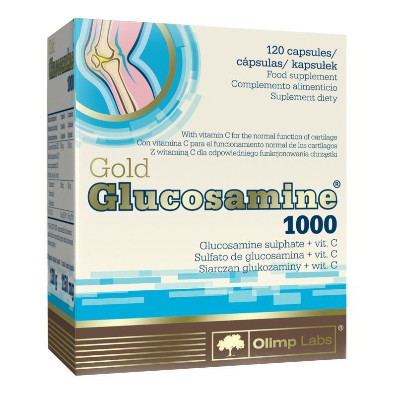 Gold Glucosamine 1000 od Olimp Labs to suplement diety w kapsułkach, zawierający siarczan glukozaminy i witaminę C, która wspomaga prawidłową produkcję kolagenu w celu zapewnienia prawidłowego funkcjonowania chrząstki oraz kości. Glukozamina występuje naturalnie w ciele człowieka jako składnik chrząstki i płynu maziowego. Jej bogatym źródłem owoce morza, a szczególnie krewetki, małże, kraby i raki.