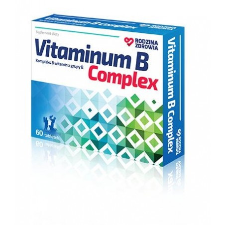Suplement diety Rodzina Zdrowia Vitaminum B Complex: polecany dla młodzieży oraz osób dorosłych uzupełnia codzienną dietę w witaminy z grupy B Składniki zawarte w preparacie: Witamina B2 , biotyna i niacyna: przyczyniają się do prawidłowego funkcjonowania układu nerwowego pomagają zachować zdrową skórę Biotyna: przyczynia się do utrzymania prawidłowego metabolizmu makroskładników odżywczych Witaminy B12 i B6 : wspomagają prawidłową produkcję czerwonych krwinek