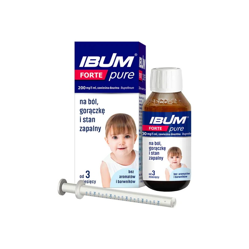 Lek Ibum Forte Pure w formie zawiesiny doustnej zawiera ibuprofen należący go grupy niesteroidowych leków przeciwzapalnych (NLPZ), wykazujący działanie przeciwbólowe, przeciwgorączkowe i przeciwzapalne. Produkt przeznaczony jest zarówno dla osób dorosłych, jak i dla dzieci od 3 miesiąca życia.