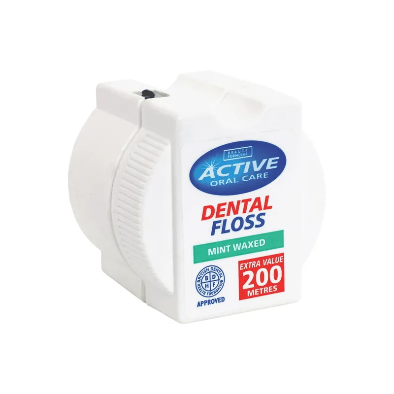 Nić dentystyczna o płaskim przekroju, miętowa, woskowana ułatwia usuwanie płytki nazębnej z przestrzeni międzyzębowych, tam gdzie nie sięga szczoteczka.