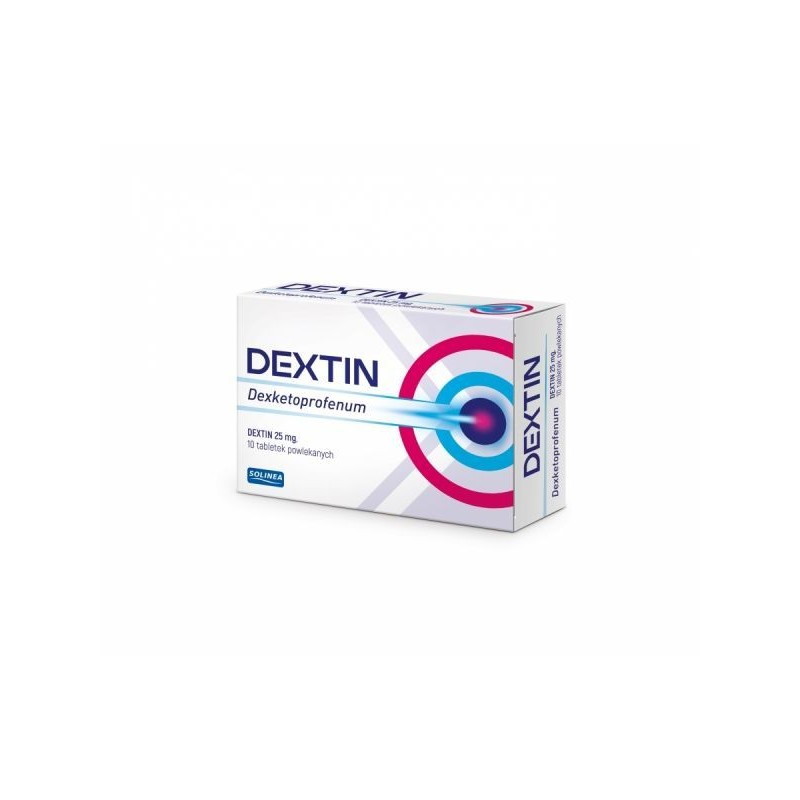 Dextin to lek przeciwbólowy w formie tabletek powlekanych, zawierających deksketoprofen z grupy niesteroidowych leków przeciwzapalnych (NLPZ). Lek stosuje się w krótkotrwałym leczeniu łagodnych i umiarkowanych bóli różnego pochodzenia, np. bóle mięśni czy zębów albo bóle miesiączkowe.