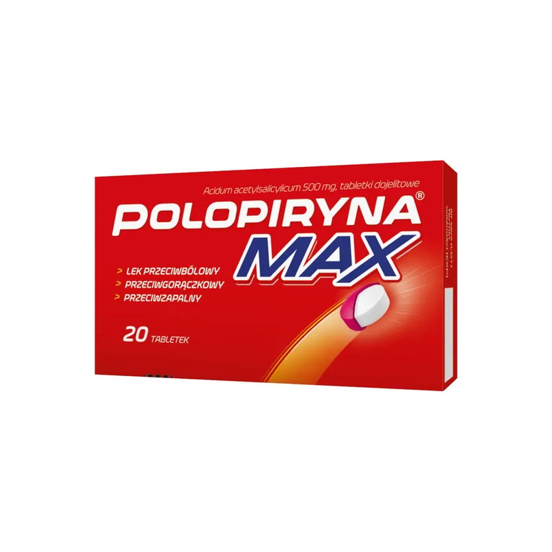 Polopiryna Max to produkt leczniczy o działaniu przeciwbólowym, przeciwzapalnym i przeciwgorączkowym do stosowania w bólu różnego pochodzenia (ból głowy, ból zębów, ból mięśniowy, ból stawów), gorączce, reumatyzmie.