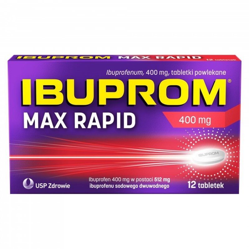 IBUPROM MAX RAPID zawiera 400 mg ibuprofenu w postaci 512 mg ibuprofenu sodowego dwuwodnego. Ibuprofen należy do leków z grupy niesteroidowych leków przeciwzapalnych (NLPZ), mających właściwości przeciwbólowe, przeciwgorączkowe i przeciwzapalne.