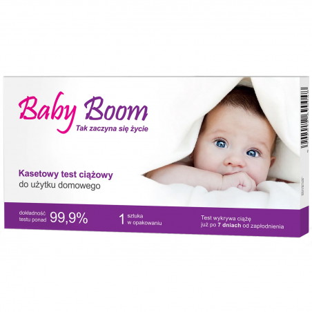 Baby Boom test ciążowy kasetkowy pozwala na wykrycie ciąży już 7 dni od zapłodnienia.