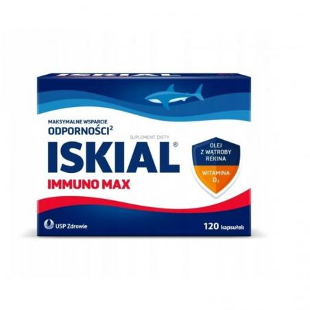 USP Zdrowie Iskial® Max powyżej 6 lat jest suplementem diety w formie kapsułek zawierających olej z wątroby rekina i witaminę D3. Kompleksowa formuła preparatu Iskial® Max zawiera olej z wątroby rekina, będący naturalnym źródłem alkilogliceroli i skwalenu. Alkiloglicerole i skwalen występują również w organizmie człowieka. Witamina D3 pomaga w prawidłowym funkcjonowaniu układu odpornościowego.